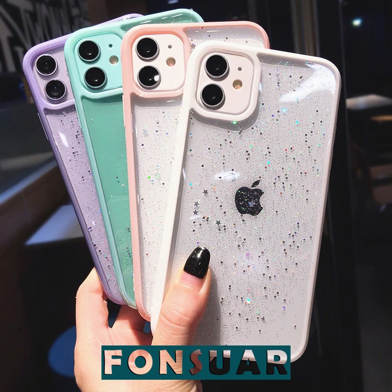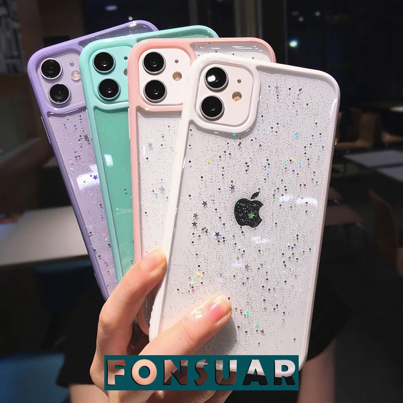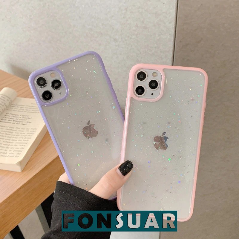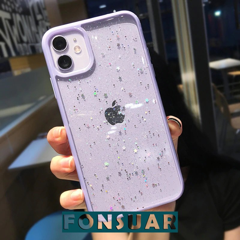 Parlak epoksi kaplı yıldız simli iphone kılıfı